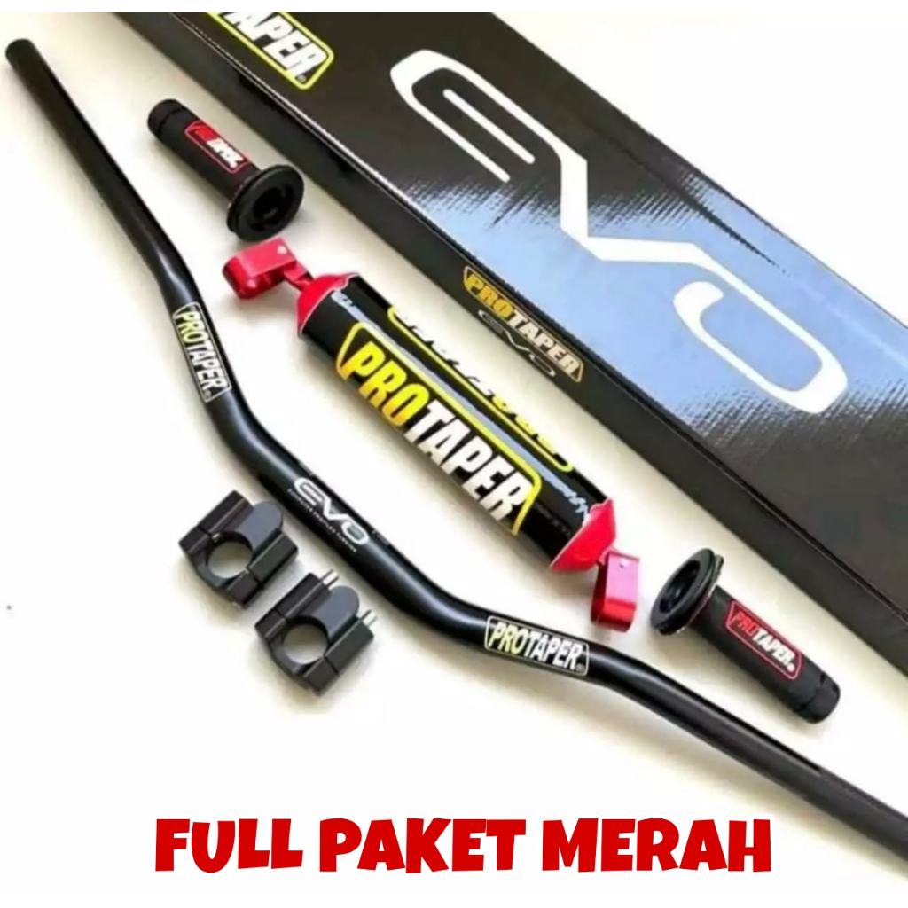 PAKETAN STANG EVO LOW PROTAPER PLUS RAISER + BUSA STANG BULAT DENGAN STABILIZER + HANDGRIP GRIP PROTAPER UNIVERSAL KLX ,
