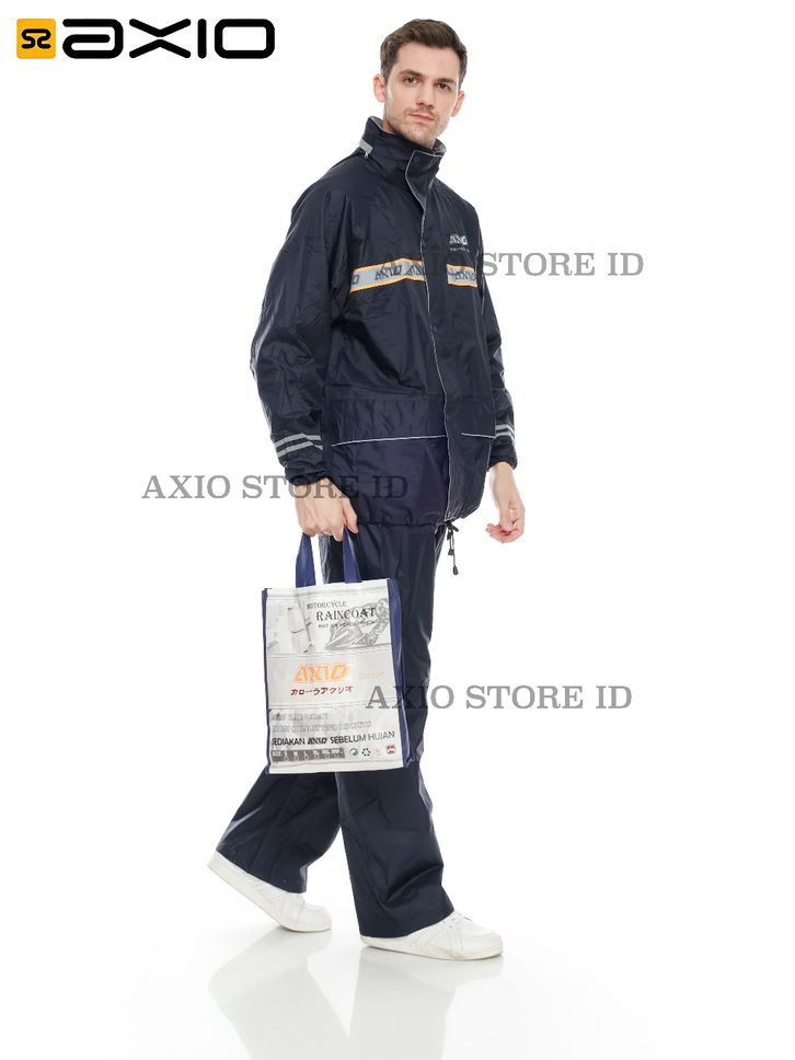 Jas Hujan Axio Navy Original Bahan Lebih Tebal Gak Mudah Robek Anti Rembel Double Layer Bergaransi