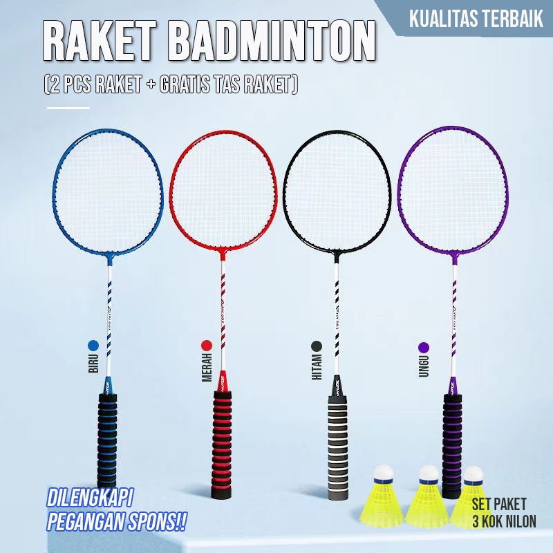 SET 2 PCS Raket Badminton Busa Raket Bulutangkis Pegangan Spons GRATIS TAS RAKET & 3 KOK