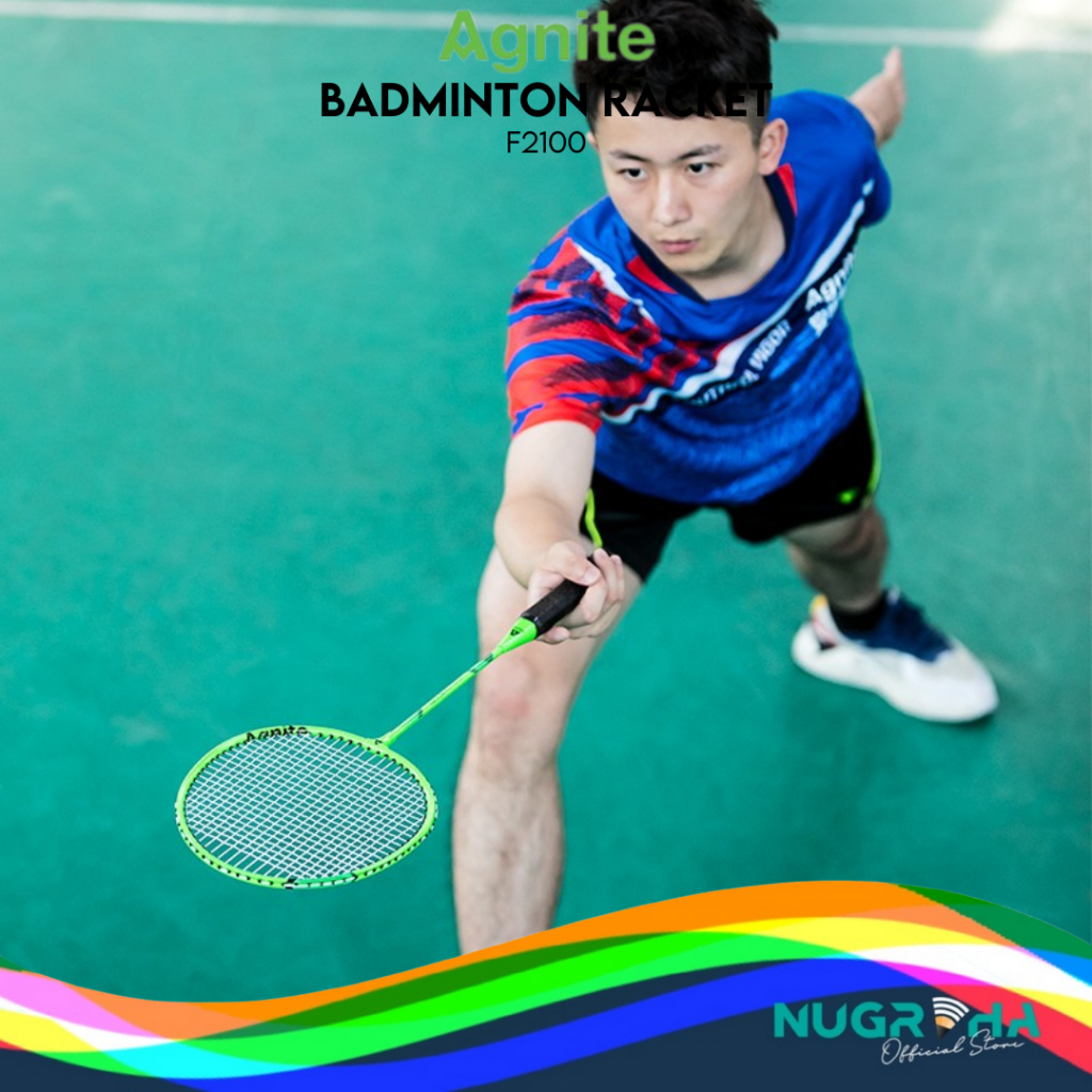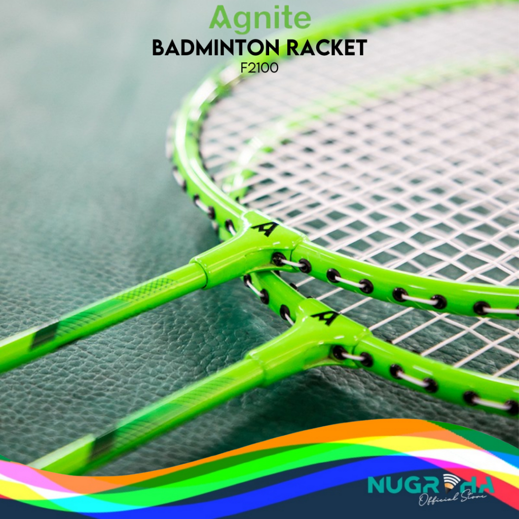 Agnite Badminton Racket / Raket badminton / Raket Bulu Tangkis Hijau Isi 2 Gratis Tas Raket F2100