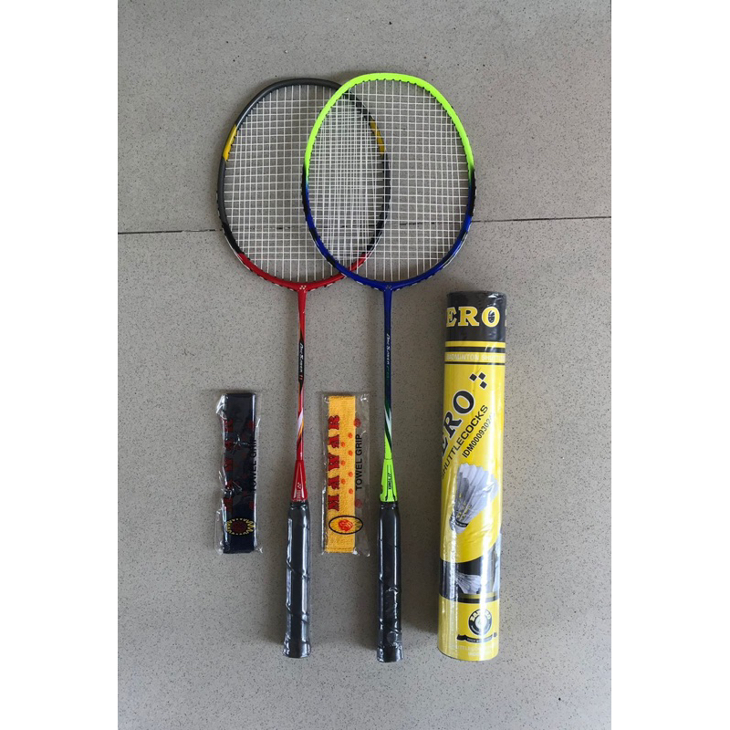 Raket Badminton Paket Lengkap Dapat 2 Raket + 2 Grip + 1 Tas + 1 Slop Kock