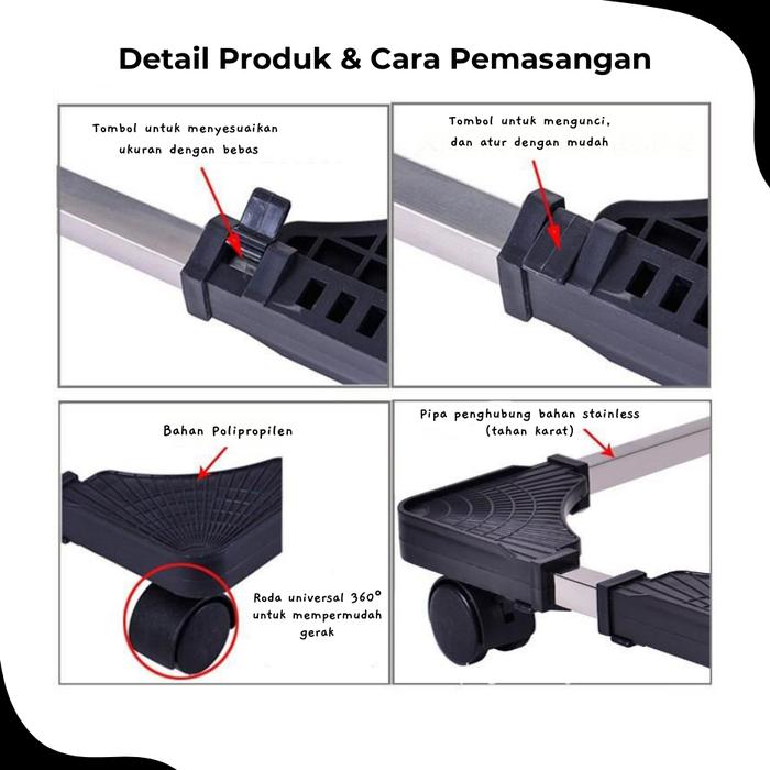 Terlaris Tatakan Dudukan Kaki Roda KUlkas Mesin Cuci Lemari CPU Komputer Roda - Hitam Promo
