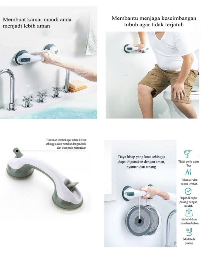 Promo Suction Bathtub Portable Helping Handle Pegangan Tangan Kamar Mandi - Abu-abu Promo