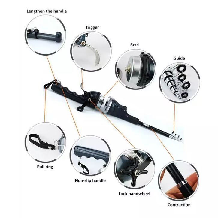 murah joran pancing lipat mini portable teleskopik 2in1 reel senar pancing set tongkat pancing rod