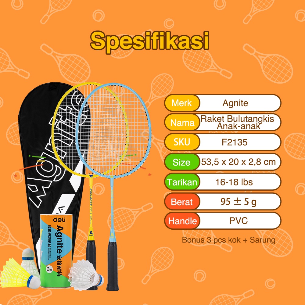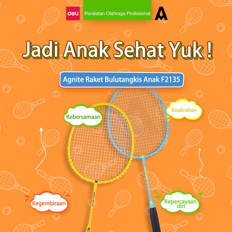 Agnite Children Badminton Racket/Raket Badminton Bulu Tangkis Anak Alat Olahraga High Quality F2135