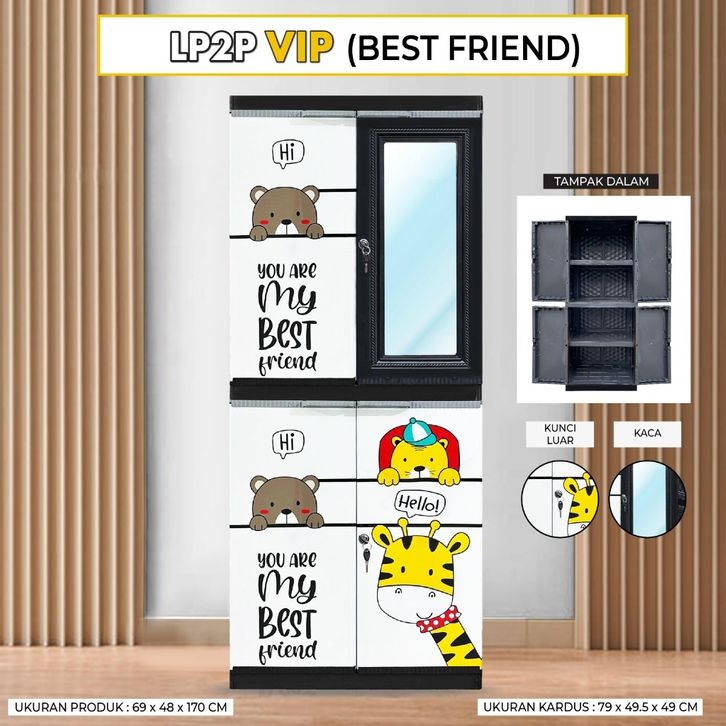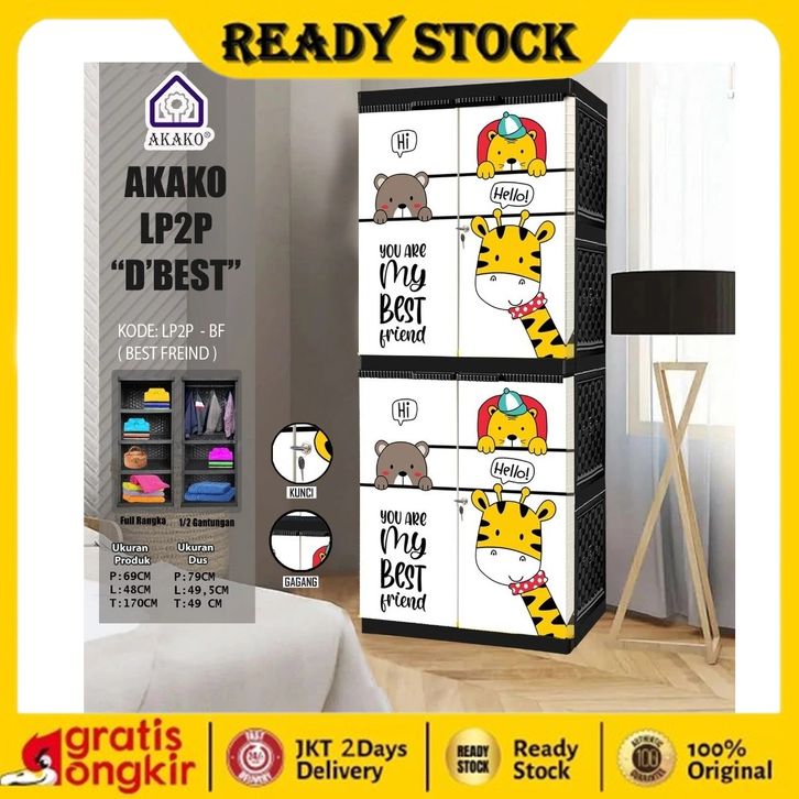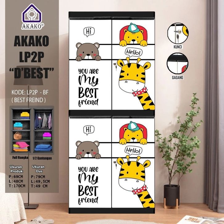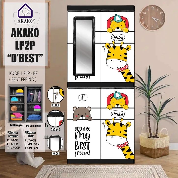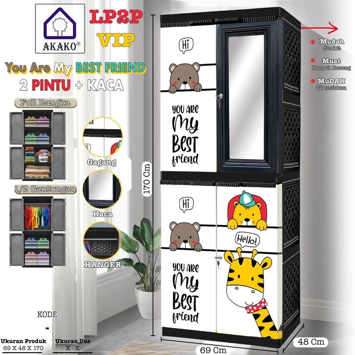 FREE ONGKIR AKAKO LEMARI PAKAIAN PLASTIK AKAKO LP2P VIP D'BEST KARAKTER ANAK FULL RAK & RAK + GANTUNGAN + KACA