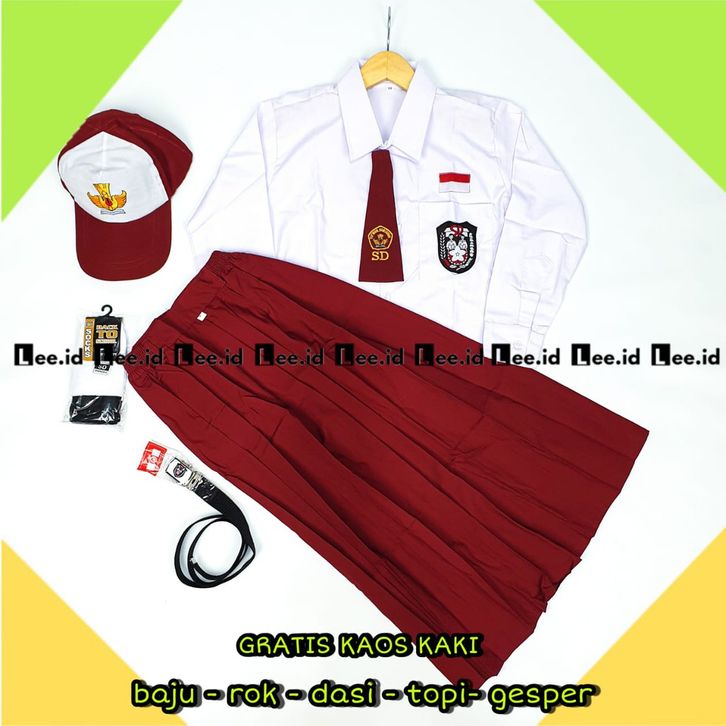 Seragam Sekolah SD Merah Putih Lengan Panjang Perempuan Kelas 1-6 SD Setelan Super Lengkap