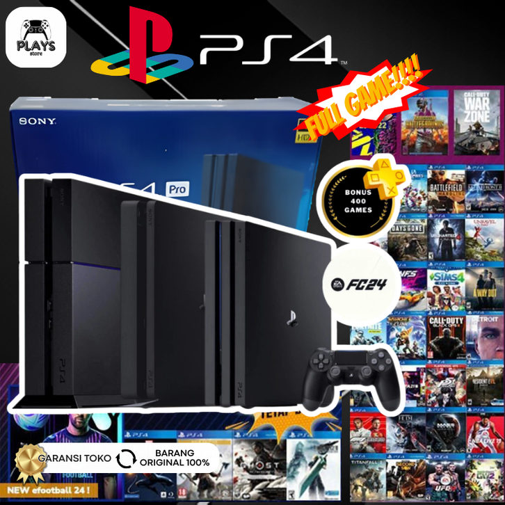 PLAYSTATION 4 PS4 FAT SLIM PRO HDD 500GB/1TB BONUS FULL GAMES + STICK BISA ONLINE DAN OFFLINE GARANSI RESMI ORIGINAL