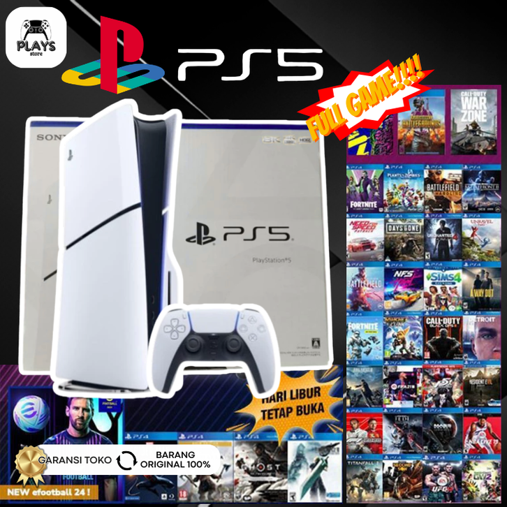 PS5 SONY PLAYSTATION 5 FAT SLIM ORIGINAL GARANSI RESMI TOKO FULLGAME FC25 EFOOTBALL 25 GAMES PS3 BANYAK BISA ONLINE