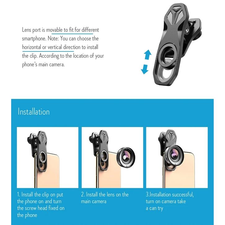 APEXEL Wide Angle 110mm - HD Lens - Premium - For Smartphone Lens - Optional F001 Bracket - Lensa bisa pasang