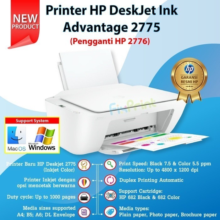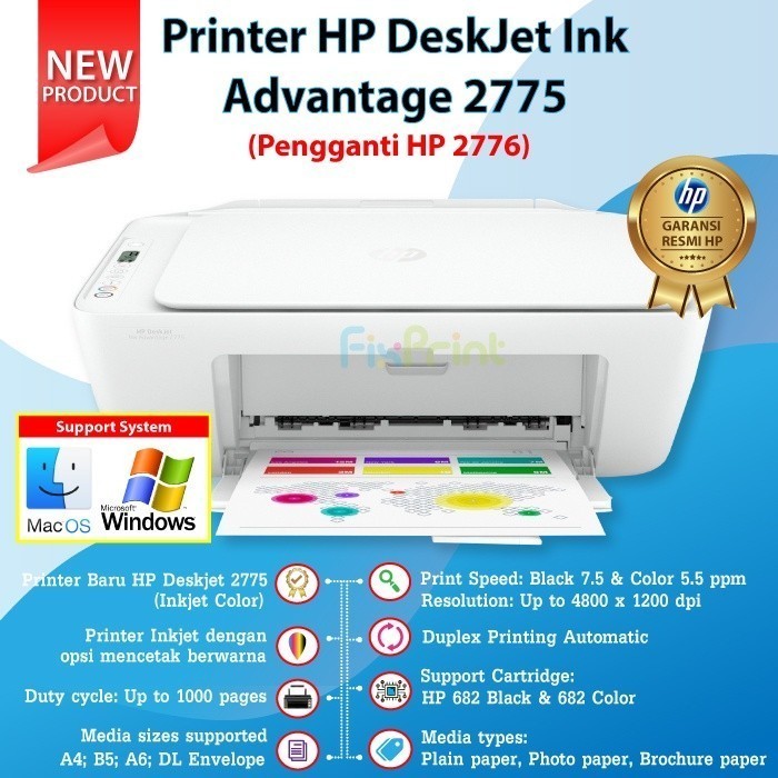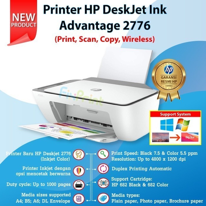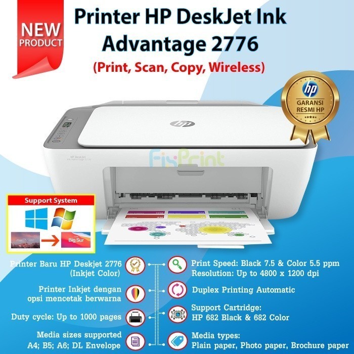 Printer HP Deskjet 2875 2776 2775 2776 Wifi Bluetooth / 2335 2336 2337 No WiFi All in One AIO Print Scan Copy WiFi Wireless Bluetooth Multifungsi 3 in 1 Photo Black Color Foto