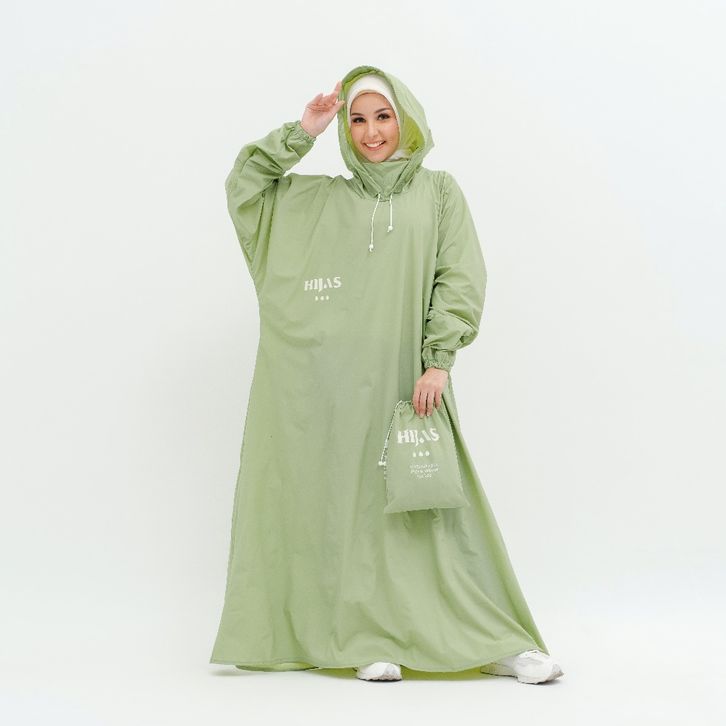 Jas Hujan Wanita Gamis Syar'i Jumbo Pastel Matcha Pvc Tebal Premium Anti Rembes Tidak Mudah Robek Anti Rembes Hijasku