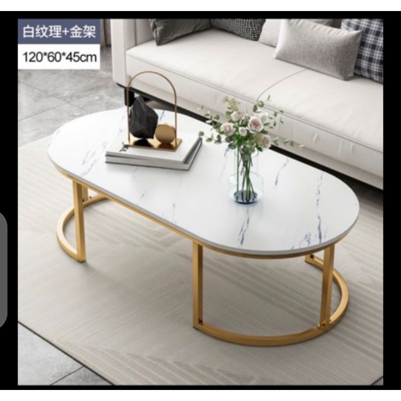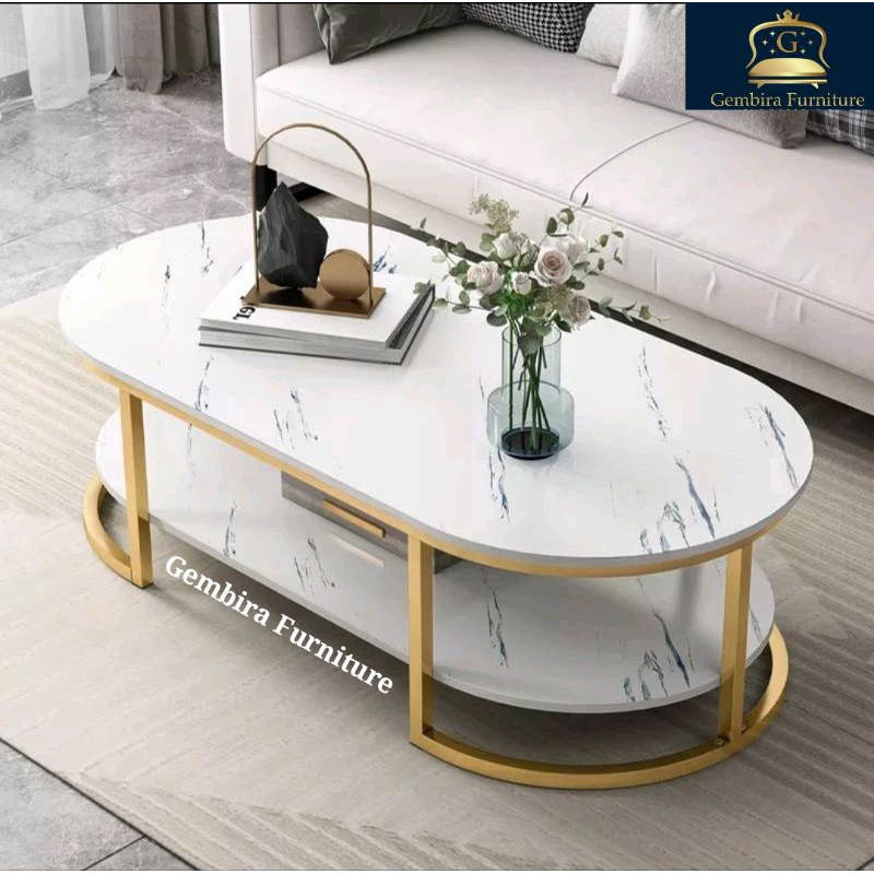 Meja Oval Tamu Repliika Marmer Marble Gold Minimalis Mewah Modern Promo Custom Table Murah Industri Gold Besi MEJA TAMU