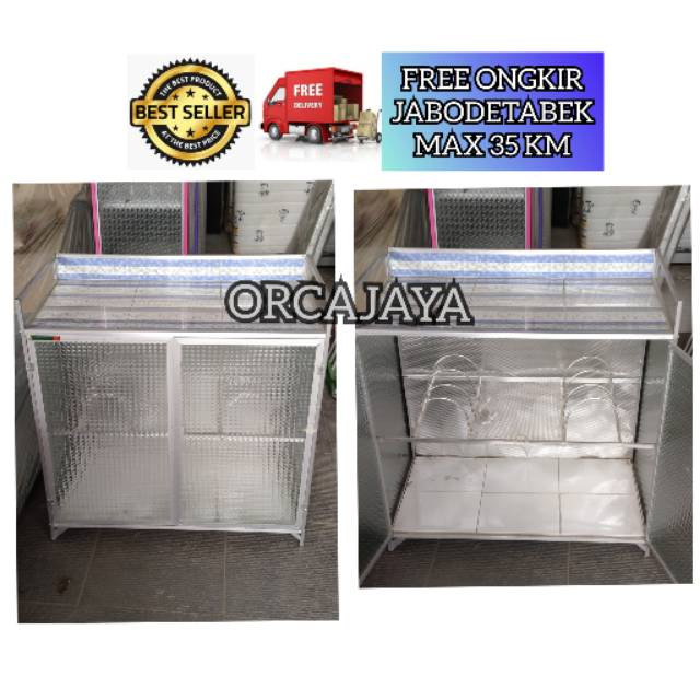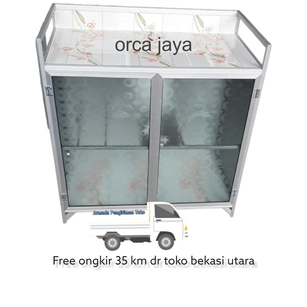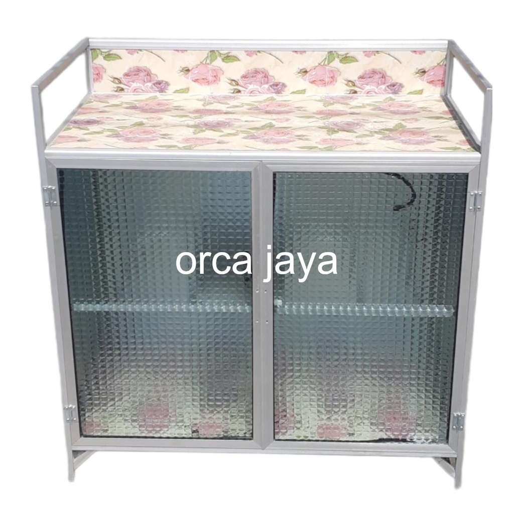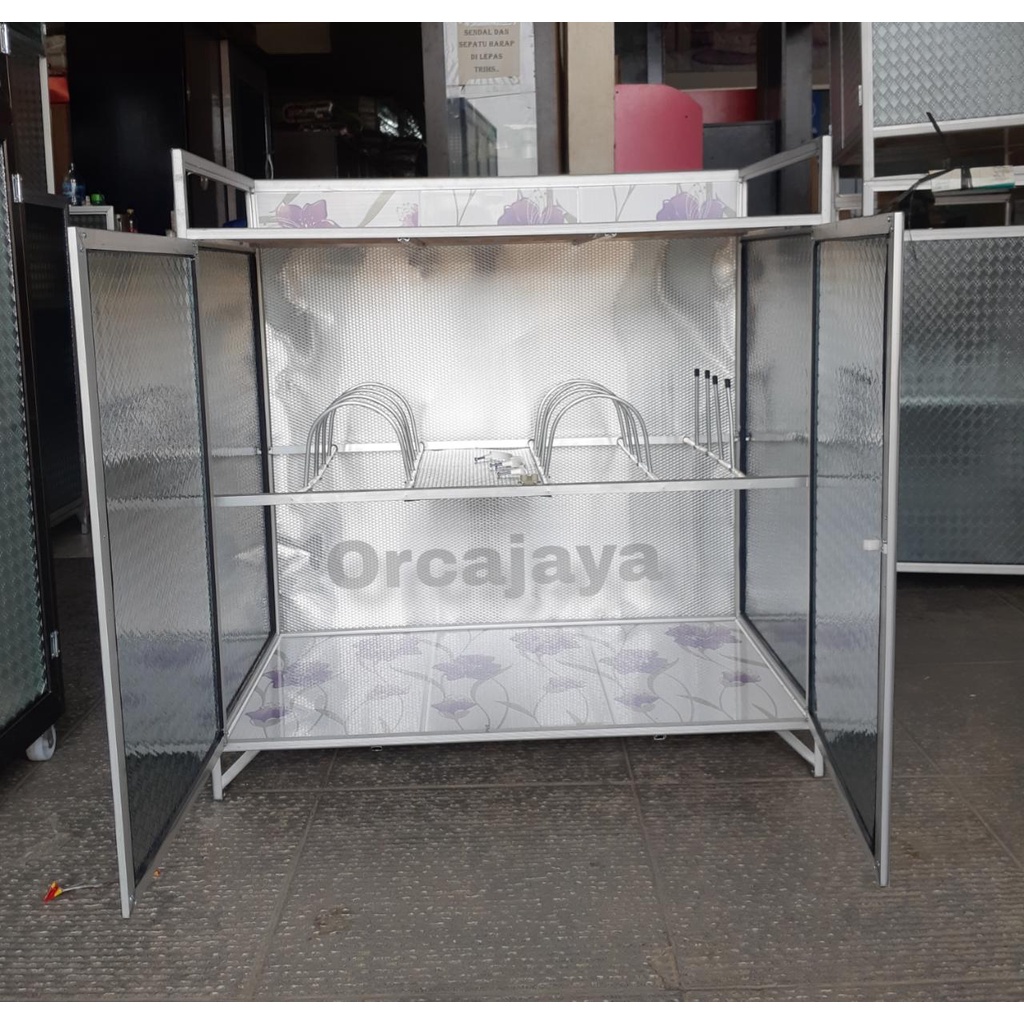 Meja Kompor Gas Alumunium Keramik Meja Kompor 2 Tungku Plus Rak Piring 2 Pintu Meja Kompor Plus Rak Piring Murah