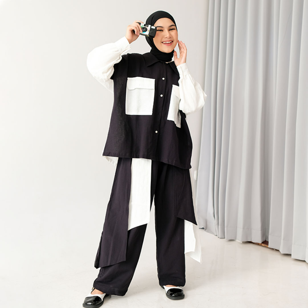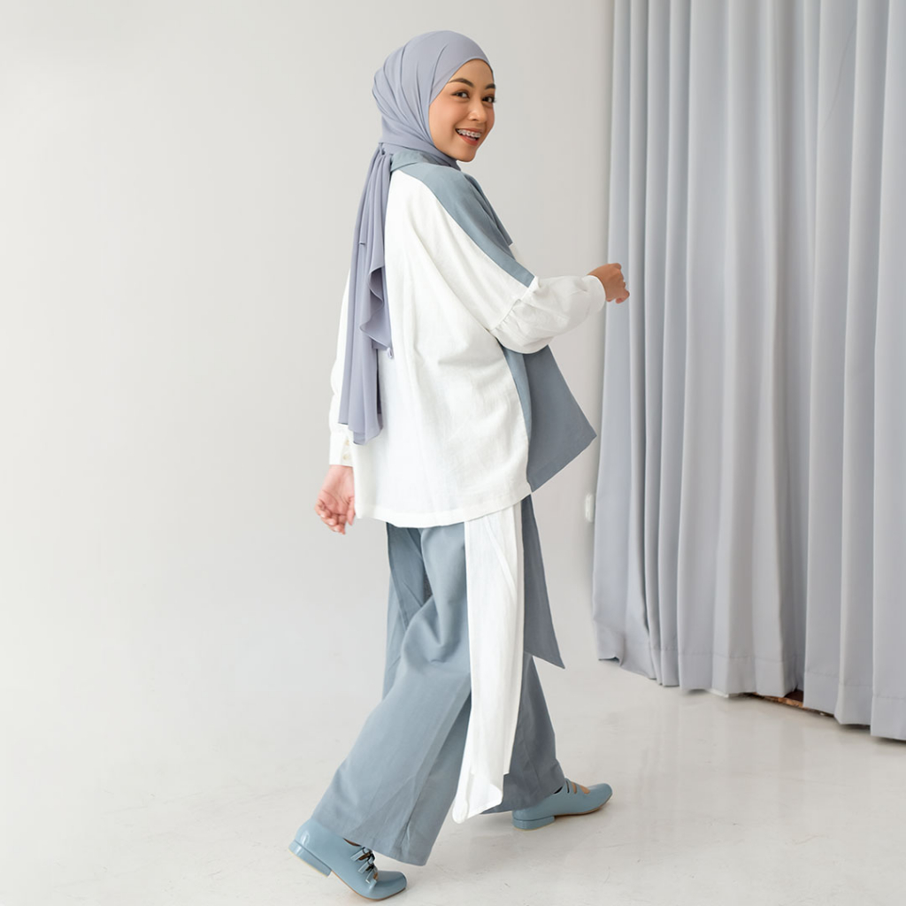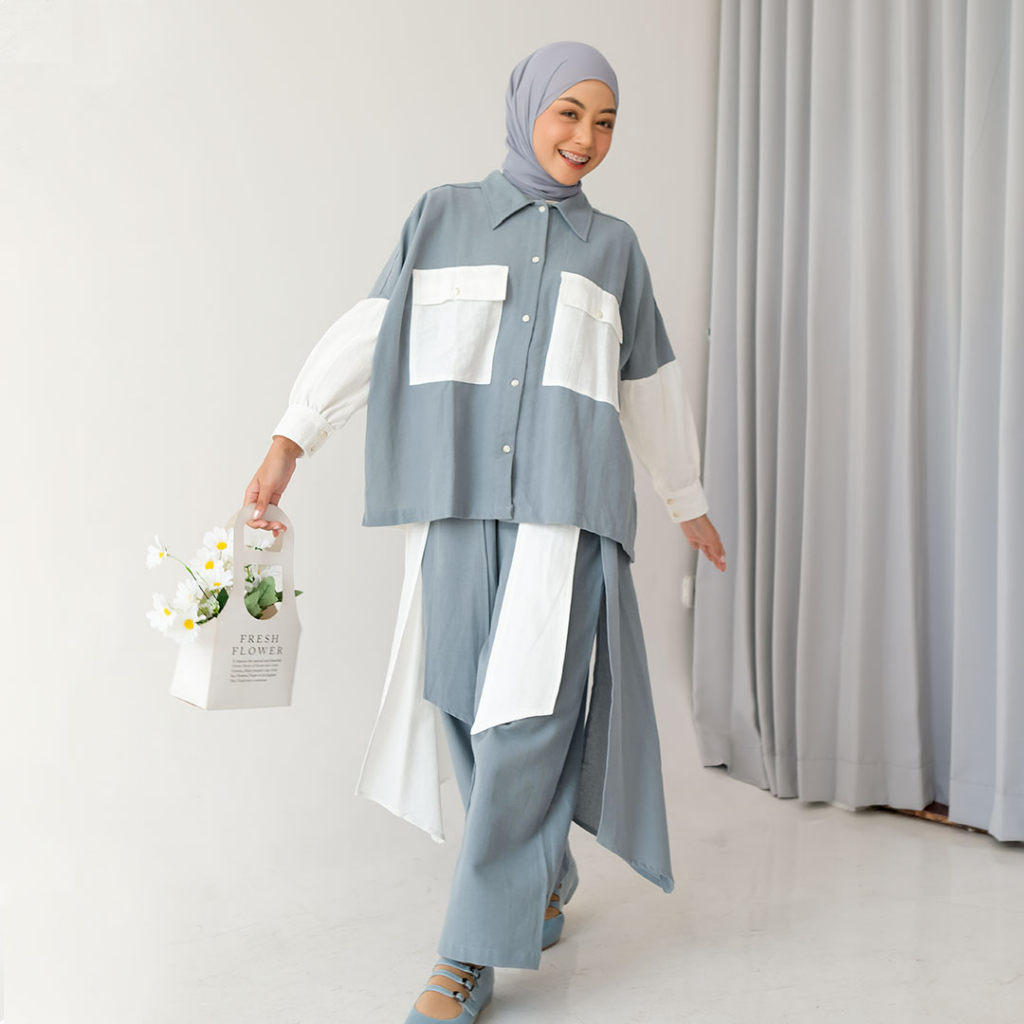 Setelan Kemeja Katun Linen Satu Set Lozy Hijab Hooja
