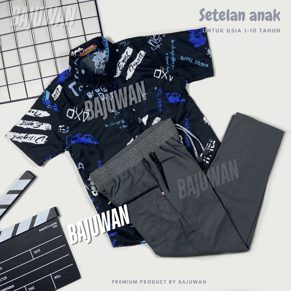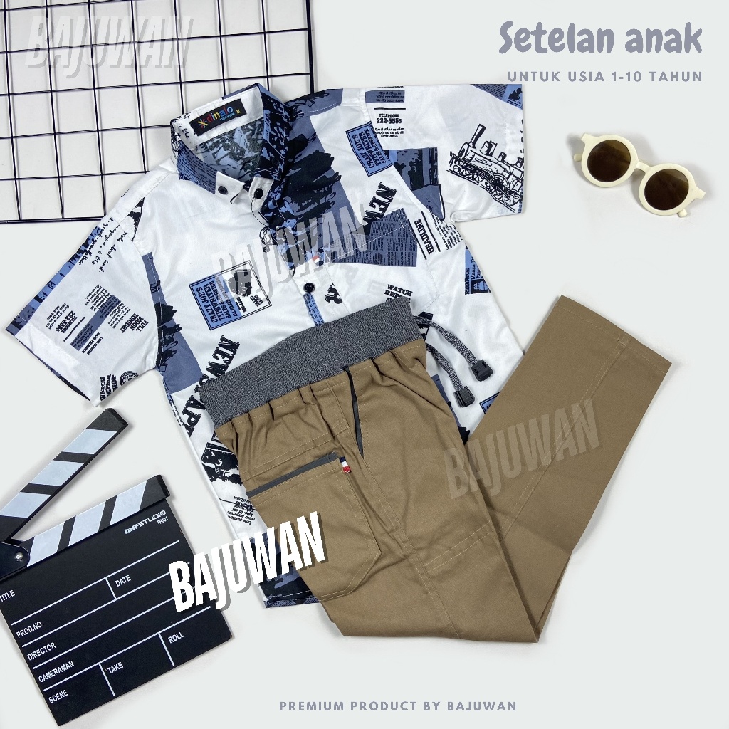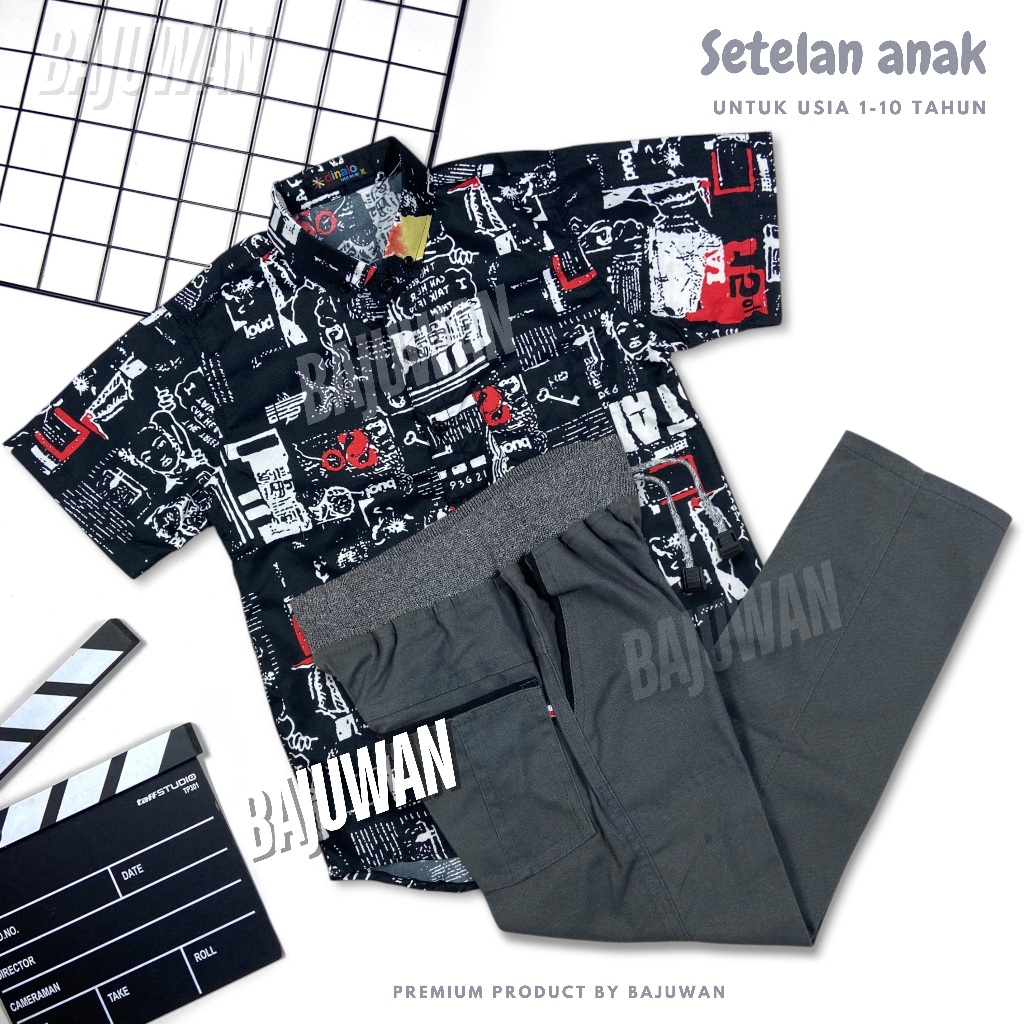 (FLASH SALE)Setelan Kemeja Motif Usia 1 2 3 4 5 6 7 8 9 10 Tahun Setelan Anak