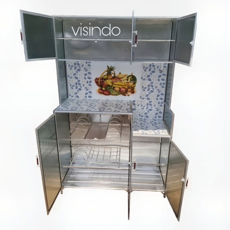 Rak Piring Kaca Keramik Minimalis Modern Tertutup 2 Dan 3 Pintu Stainless Karakter Lemari Piring Aluminium Berkualitas