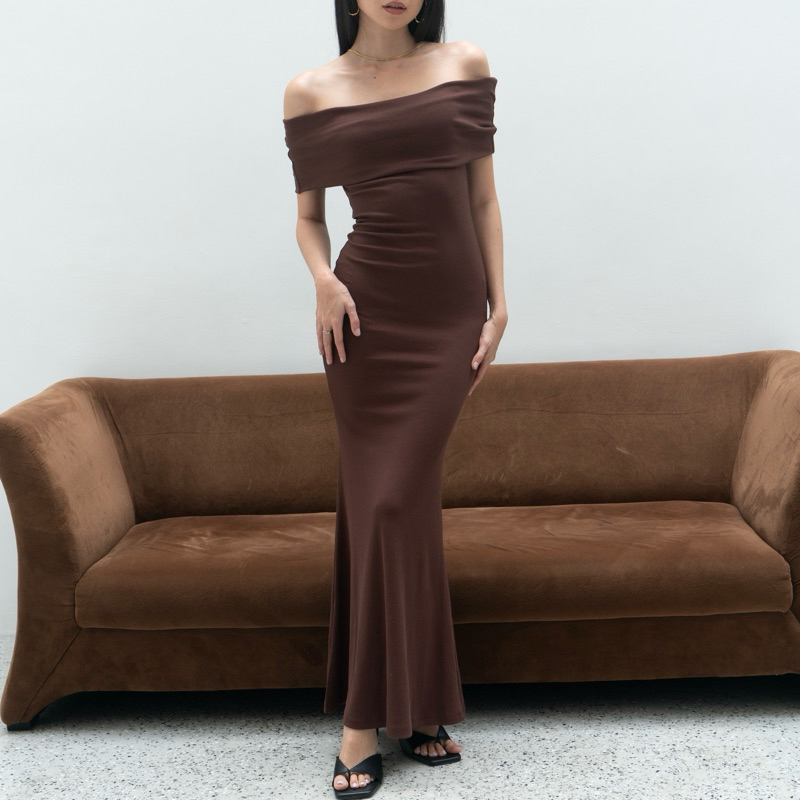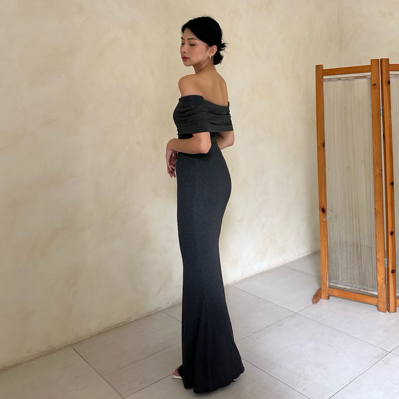 Long Dress Wanita ROOHA – Diane Dress Sabrina Off Shoulder Ribbed Knit Premium
