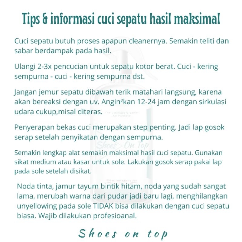 Shoes On Top Shoe Cleaner Kit - Pembersih Sepatu Canvas Suede Kulit Leather Mesh Putih Warna 500ml