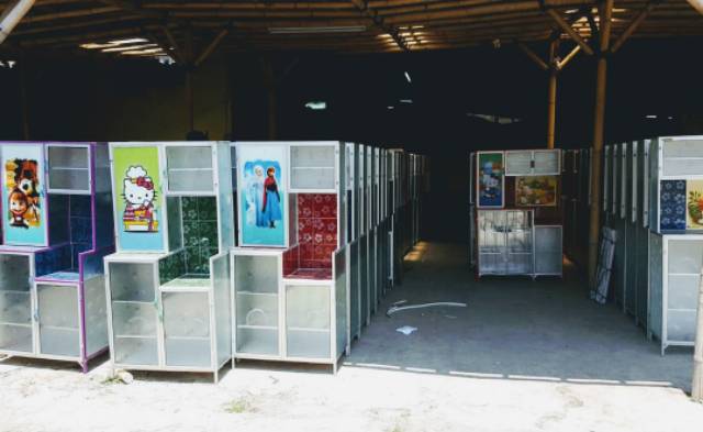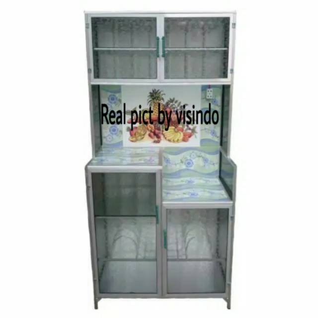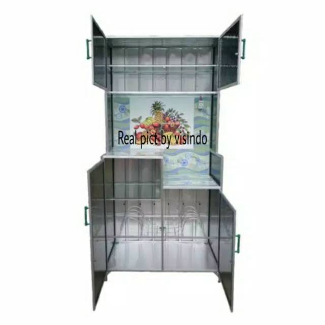 Rak Piring Kaca Rak Magicom Lemari Dapur Kaca Keramik Aluminium 2 Pintu Lemari Piring Kaca