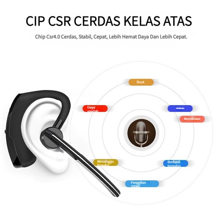 [[ ORI ]] Headset CREW V8 Anti Air Bluetooth with Long Mic 8D Bass Wireless Earphone 5.0 Single Sport
