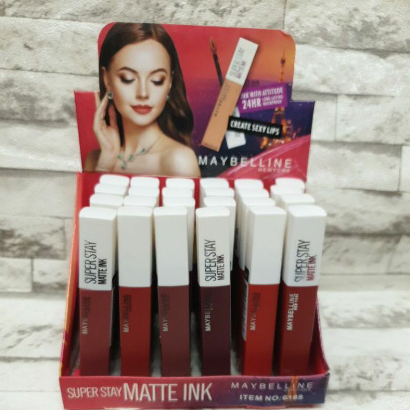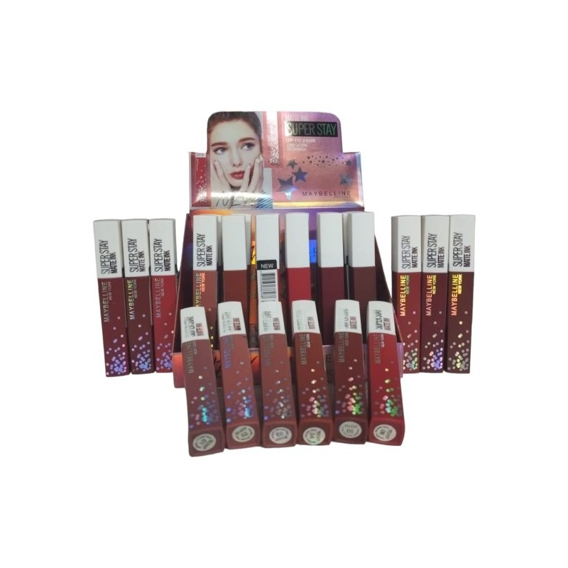 lipstik maybelline matte (24pcs) LIPGLOlipstik maybelline matte (24pcs) LIPGLOSS GlosSS Glossy bare Maybelline (panjang)