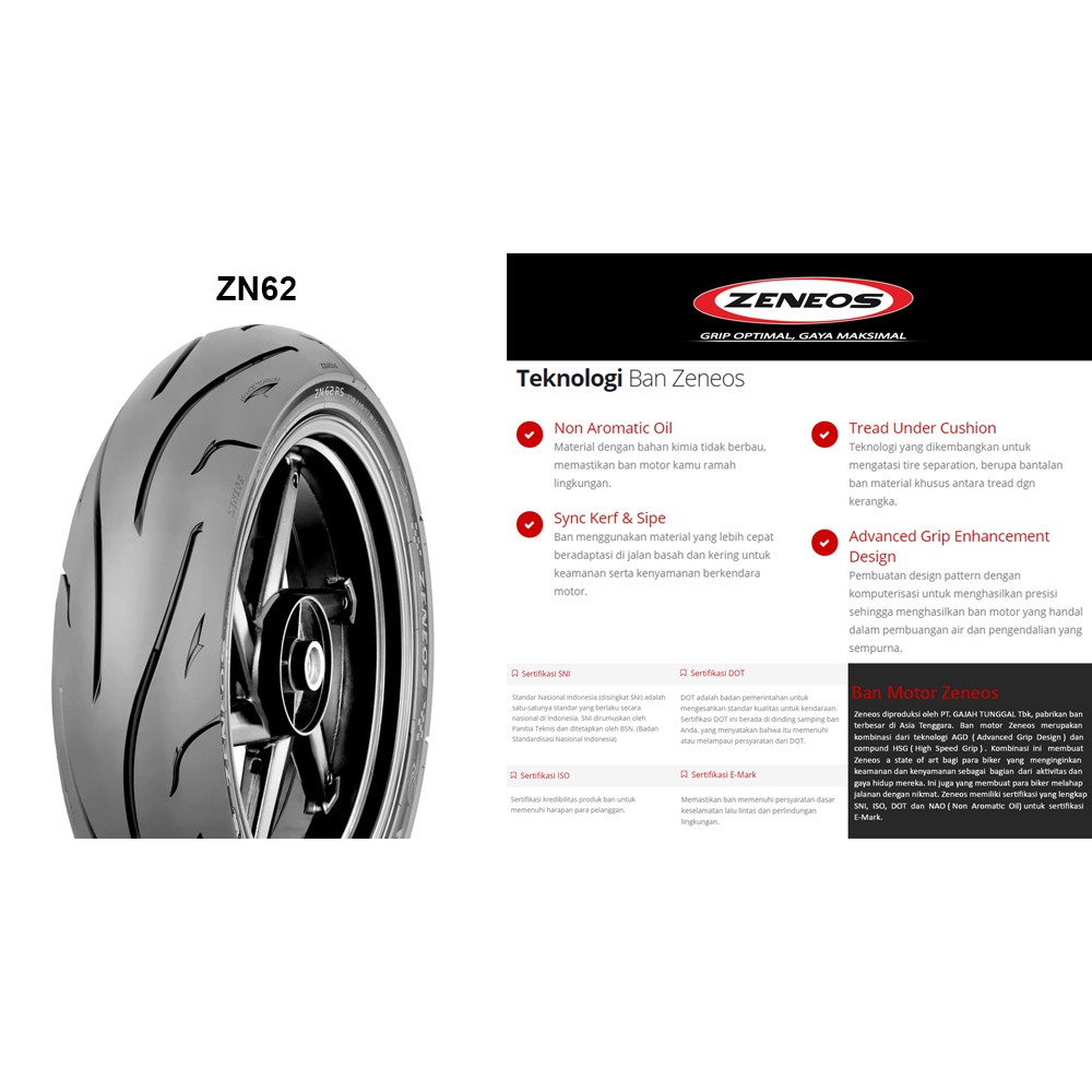 90/80 RING 14 BAN LUAR ZENEOS ZN62 - BAN LUAR MOTOR MATIC BEAT, VARIO, PCX 150 TUBELESS FREE PENTIL