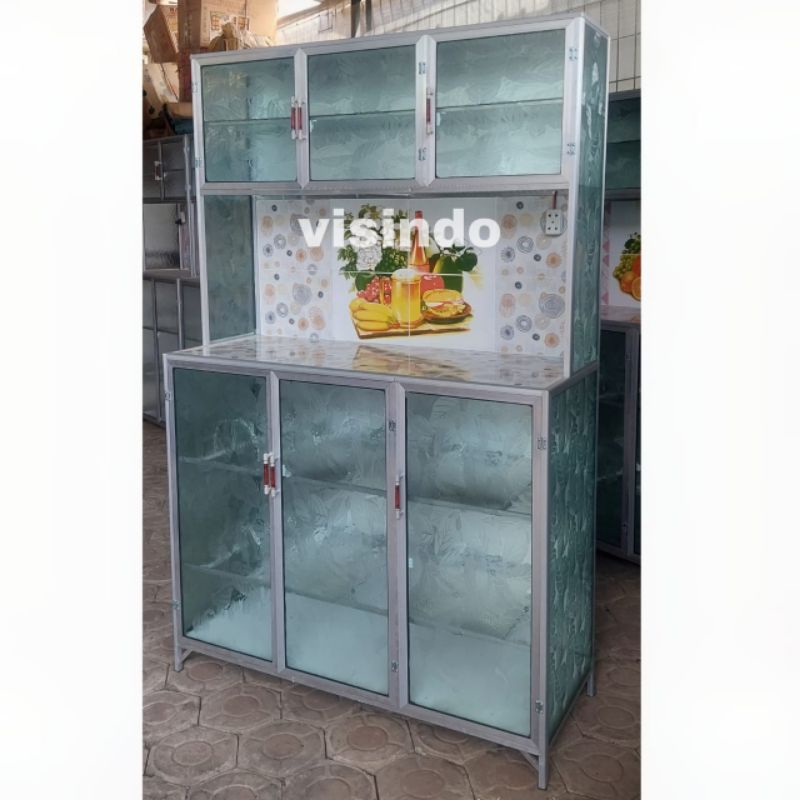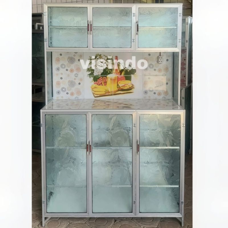 Rak Dapur Rak Piring Alumunium Keramik 3 Pintu Rata Bawah Keramik Lemari Piring Jumbo Besar Termurah
