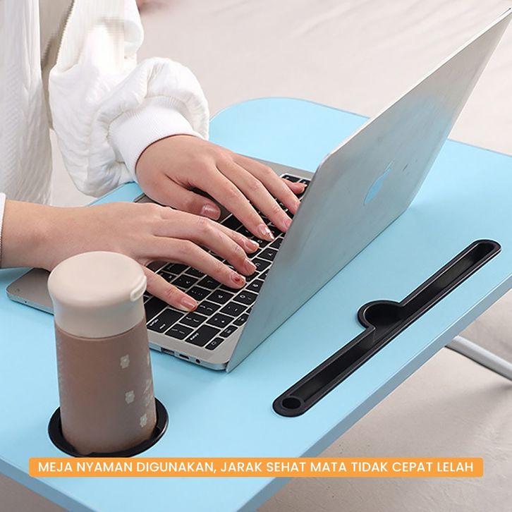 Meja Belajar Laptop Lesehan Portable Rumaku Serbaguna Bahan Kayu Hpl Kaki Besi Kokoh Berkualitas