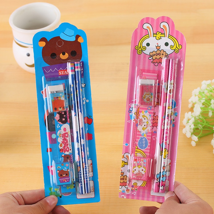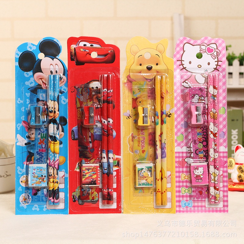 ALAT TULIS SEKOLAH LENGKAP SET 5 IN 1 PAKET ANAK SEKOLAH ALAT TULIS KANTOR PENSIL PENGHAPUS PENGGARIS SERUTAN KARAKTER