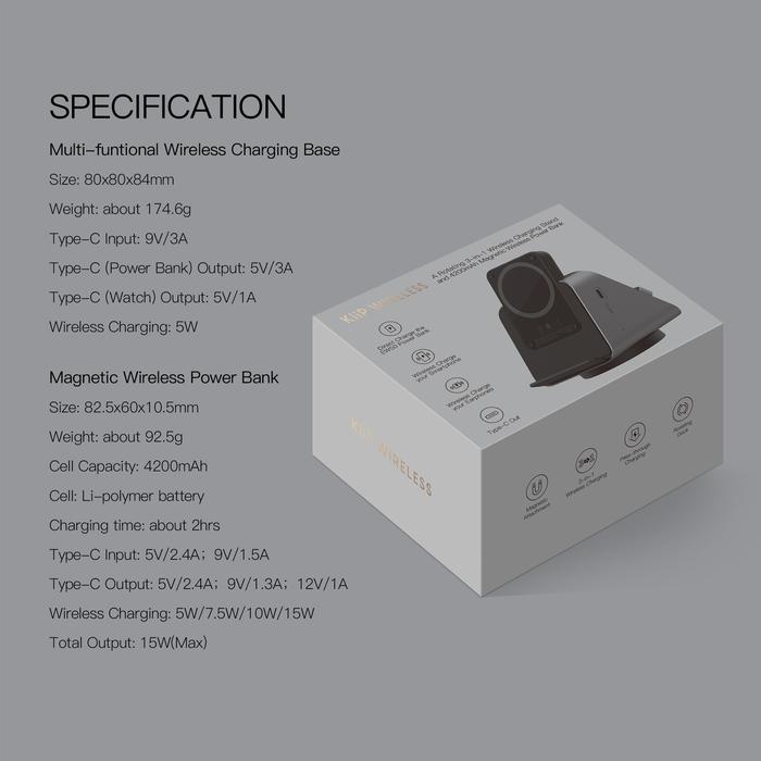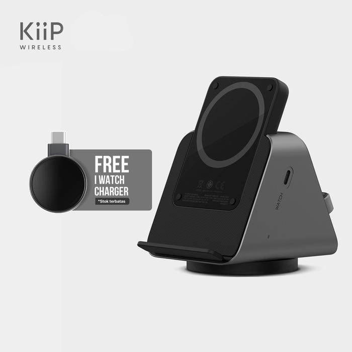 Kiip Wireless Ew50S Magsafe Powerbank Wireless Charger Base 3In1 Pd Fast Charging - Hitam