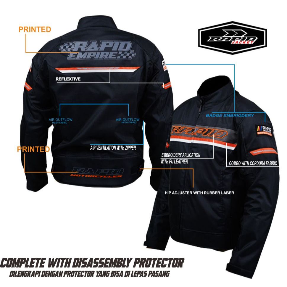 RAPID EMPIRE non PROTECTOR jacket motor touring premium anti angin dan air dilengkapi SLOT protector dan ventilasi anti