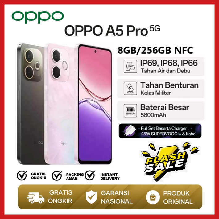 HP OPPO A5 PRO 5G 8/256GB GARANSI RESMI NFC Dimensity 6300 45W SUPERVOOCTM Baterai Besar 5800mAh