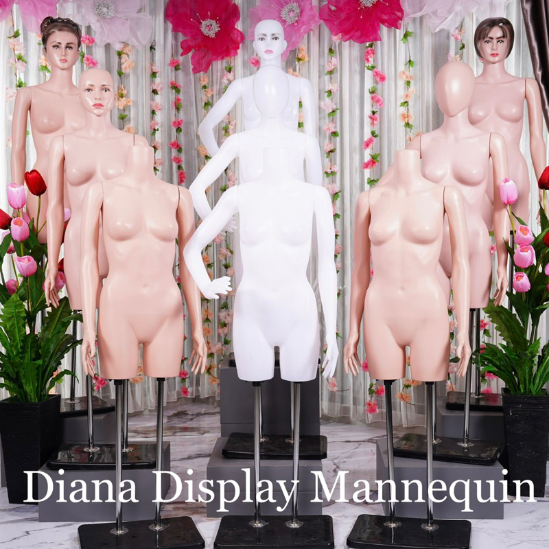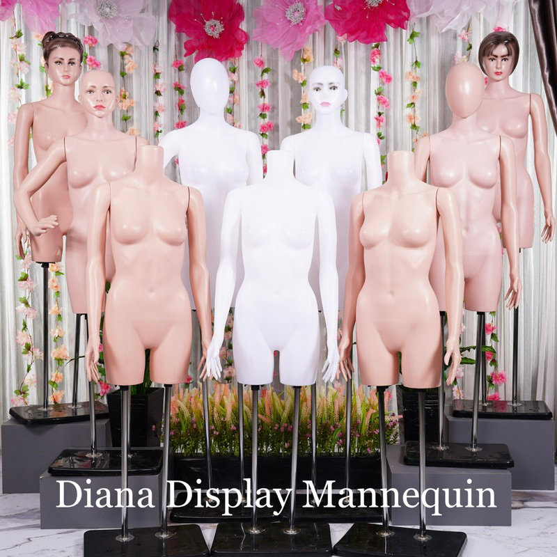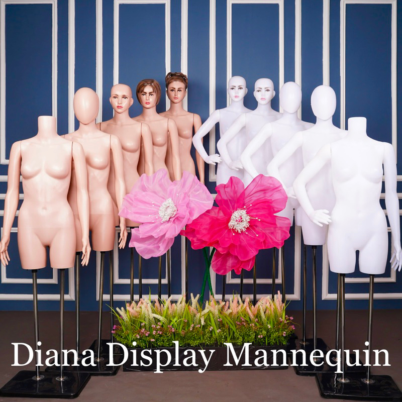 PATUNG MANEKIN BODYFIT WANITA 1 SET LENGKAP DENGAN BESI PENYANGGA KEPALA DAN TANGAN PLASTIK SET TIANG BESI