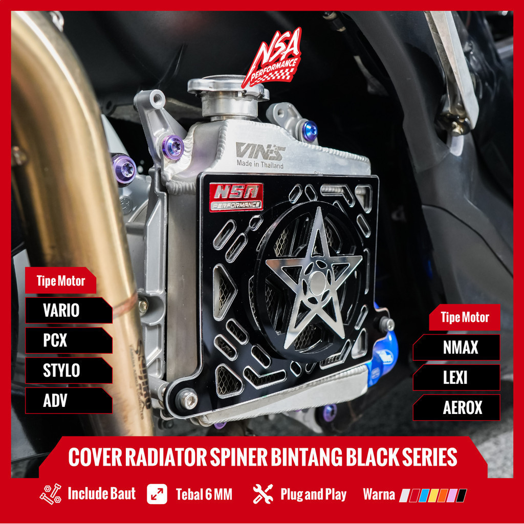 NSA COVER RADIATOR SPINER BINTANG BLACK SERIES Tutup Radiator Spinner Bintang