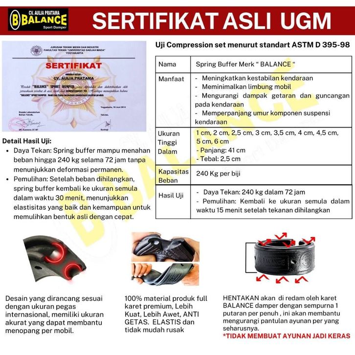 Spring Buffer BALANCE Damper Shock Mobil AVANZA / XENIA GARANSI 5 Tahun, KUALITAS UGM SertifikatSpring Buffer BALANCE Da