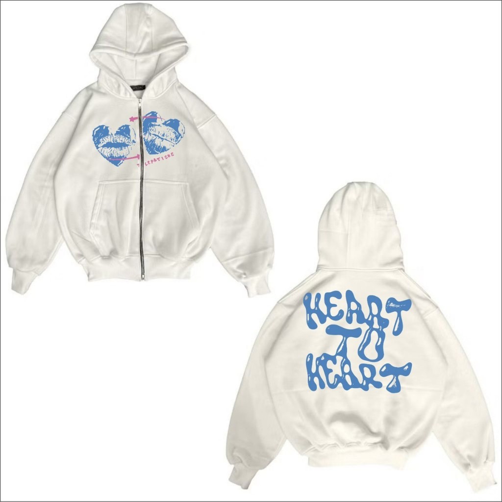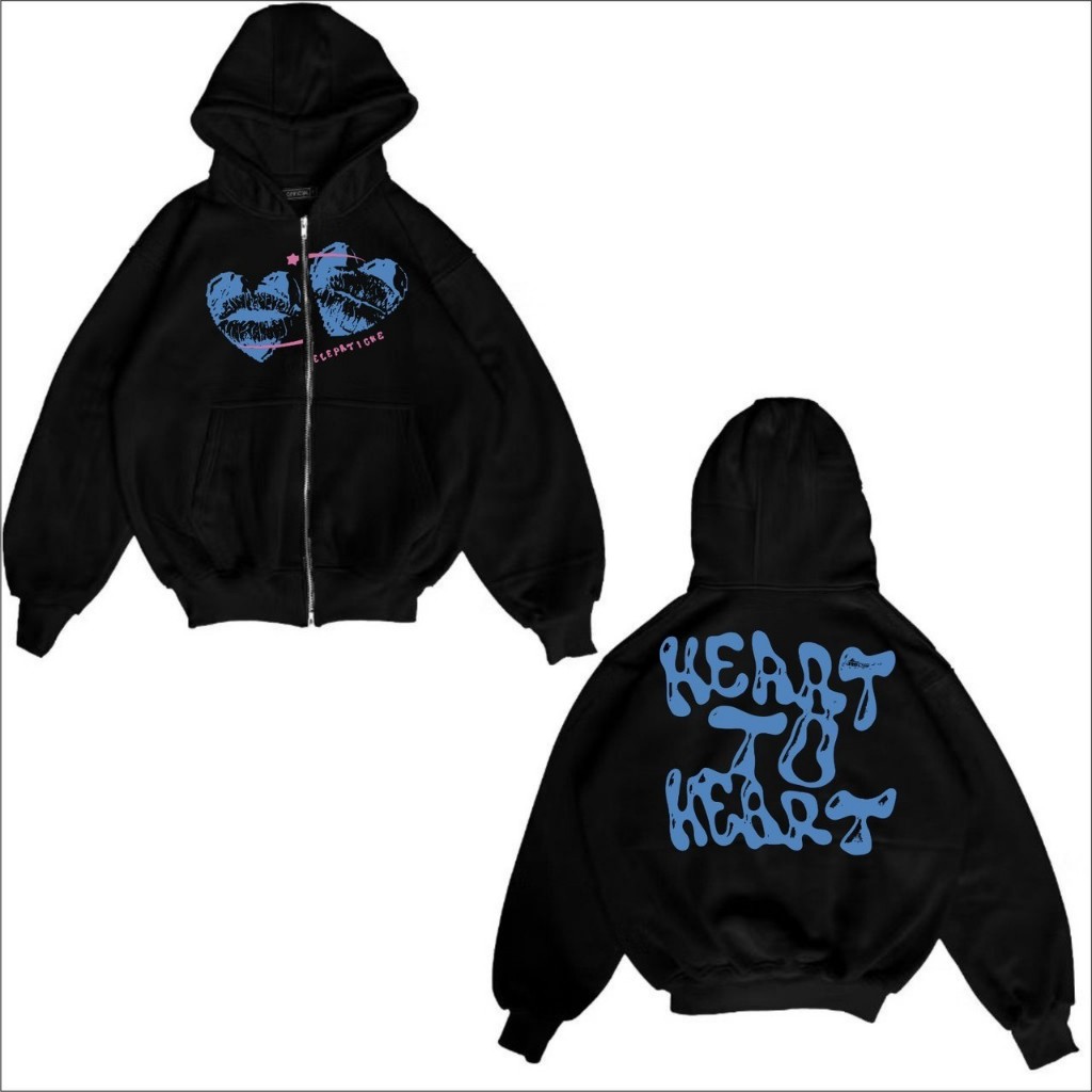 Jaket Sweater Hoodie Boxy Double Zipper Heart To Heart High Quality / Sweater Hoodie Boxy Pria Dan Wanita Love Blue Full