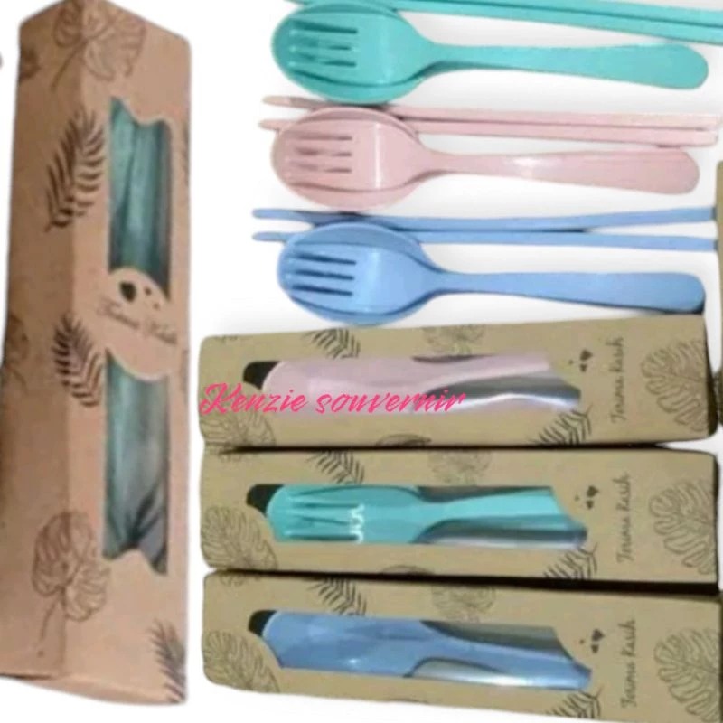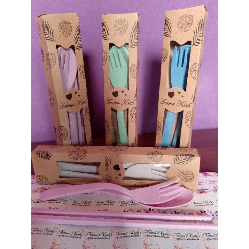 souvenir 100 pcs travel set sendok sumpit garfu souvernir murah kemasan box