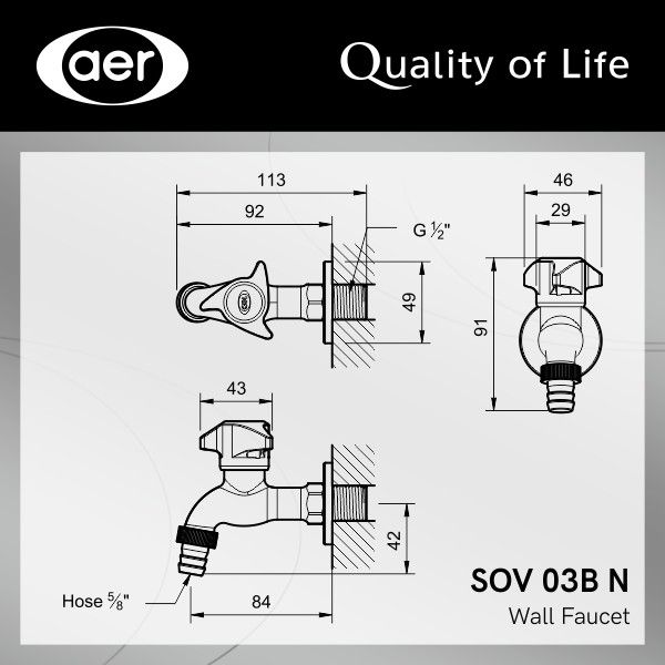 AER Kran Air Tembok Kuningan/Untuk Selang/Wall Faucet/Nepple SOV 03B N