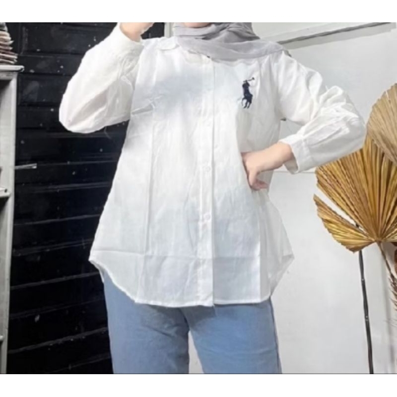 Kemeja Wanita Putih bordir polo Lengan Panjang