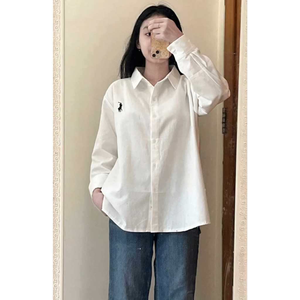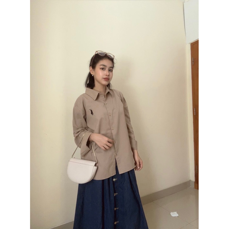 atasan kemeja bordir polo premium /atasan kemeja wanita lengan panjang / atasan kemeja wanita polo / kemeja atasan wanit