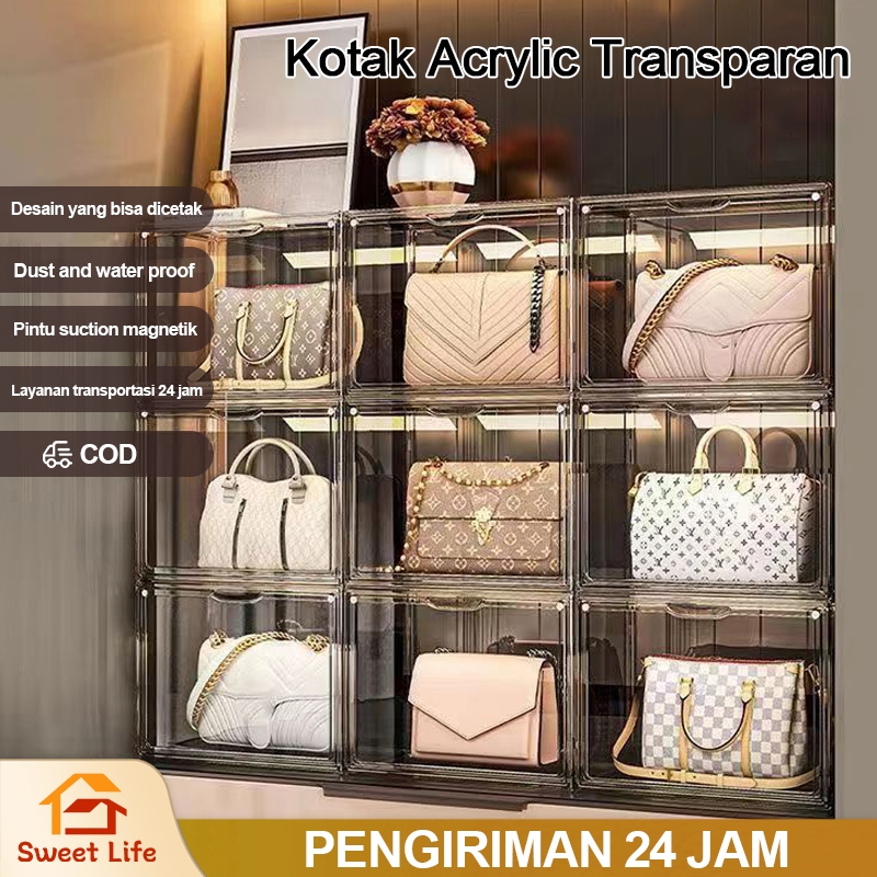 DISPLAY BOX/TAS TRANSPARANT/TRANSPARENT STORAGE/ACRYLIC AKRILIK/TEMPAT TAS BAG BOX PENYIMPANAN ORGANIZER BOX