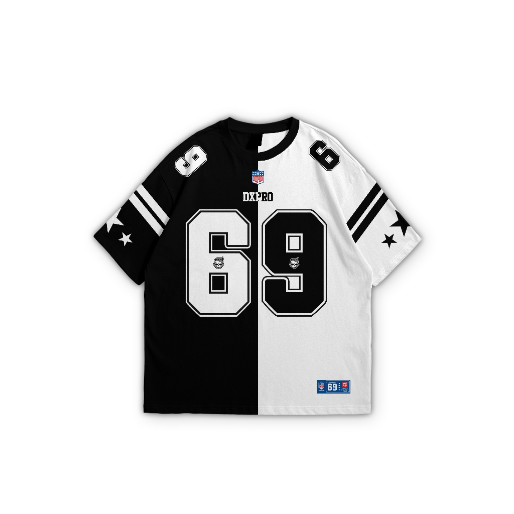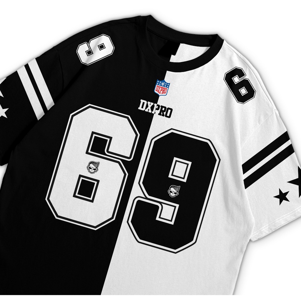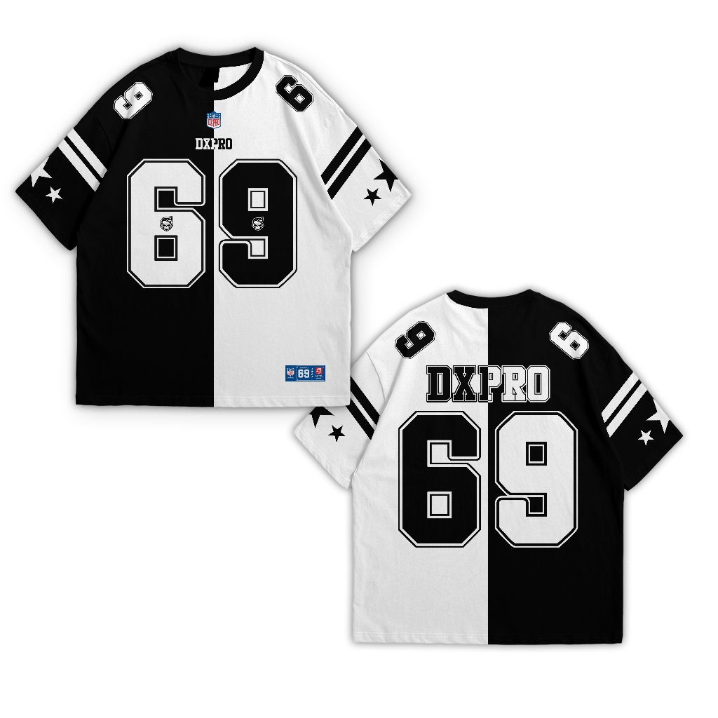 DXPRO 69 STRIP COMBINE Black White Oversize T-shirt Heavy Cotton 20s