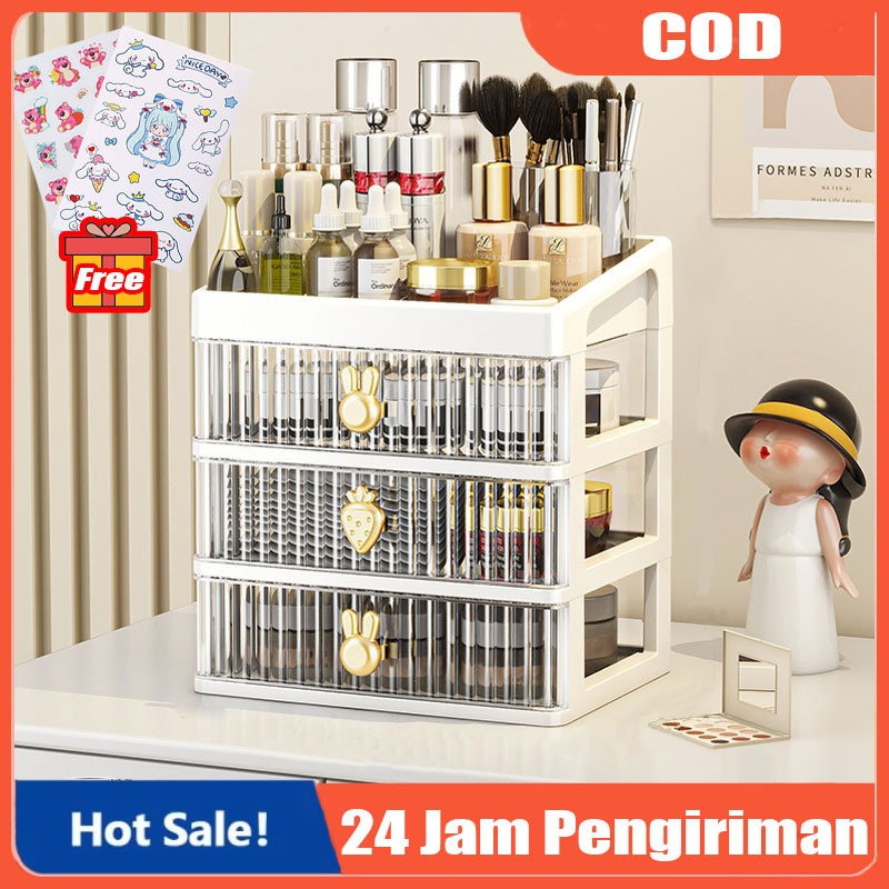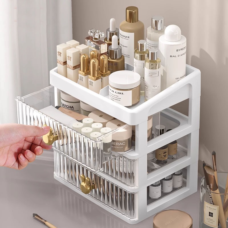Rak Kosmetik Serbaguna 3 Laci Desktop Drawer Rak Susun Serbaguna Tempat Make Up