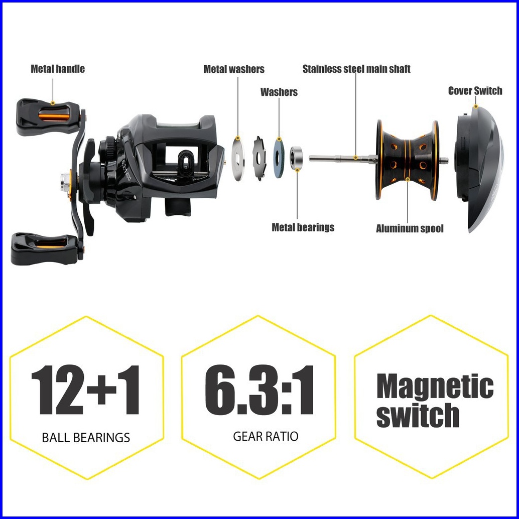 Sougayilang Reel Pancing 12 1bb Fishing Reel 6.3 1 Gear Ratio Travel Bass Reel Bc
