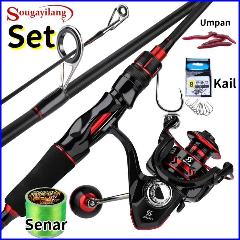 Sougayilang Joran Pancing Set 1.8 2.1m Joran Dan 2000-7000 Full Metal Reel Pancing Joran Set Lengkap