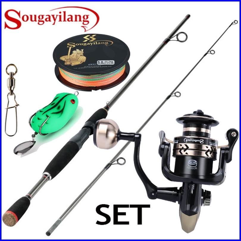 Sougayilang Joran Pancing Set Alat Pancing 2 Sections 1.8m Spining Fishing Rod With Fishing Reel Set Gear Ratio 5.2 1 Ma