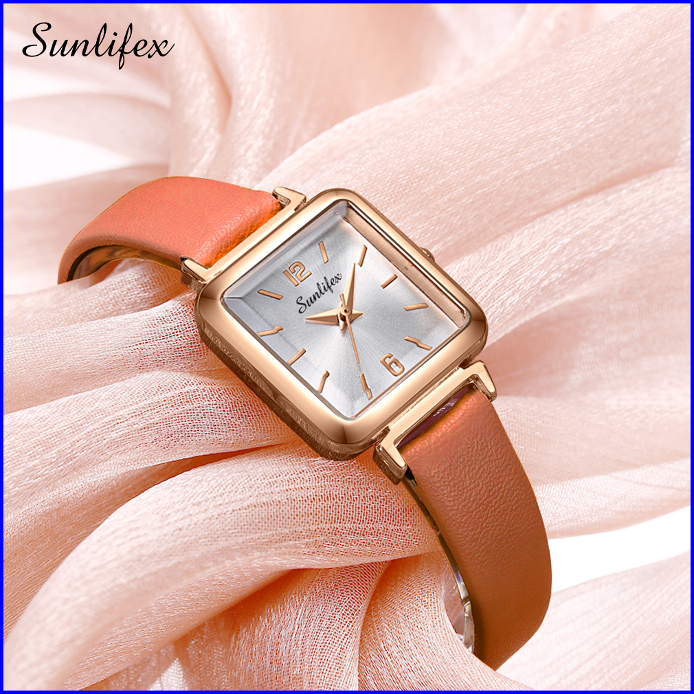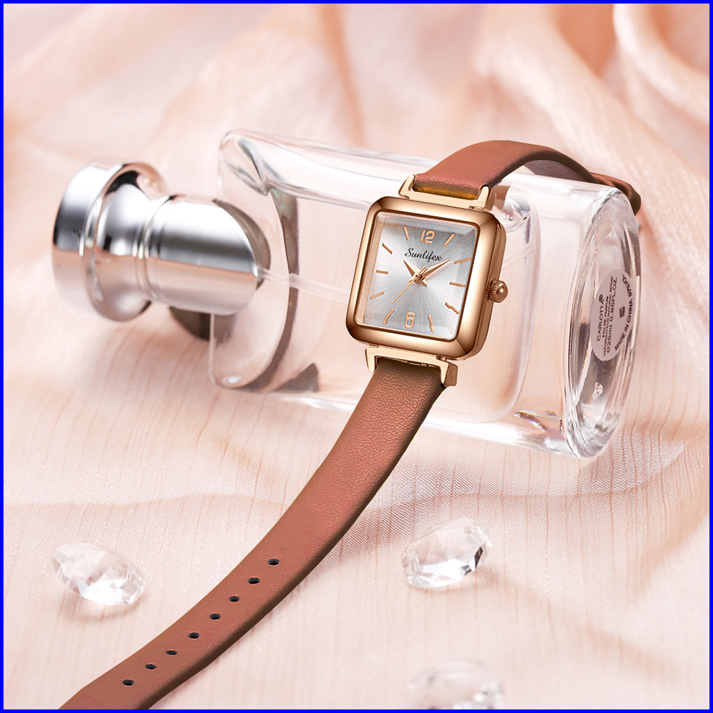Sunlifex Jam Tangan Wanita Kecil 8004 Original Korea Style Menampilkan Kuarsa Mode Anggun Jam Tali Kulit Jam Tangan Cewe