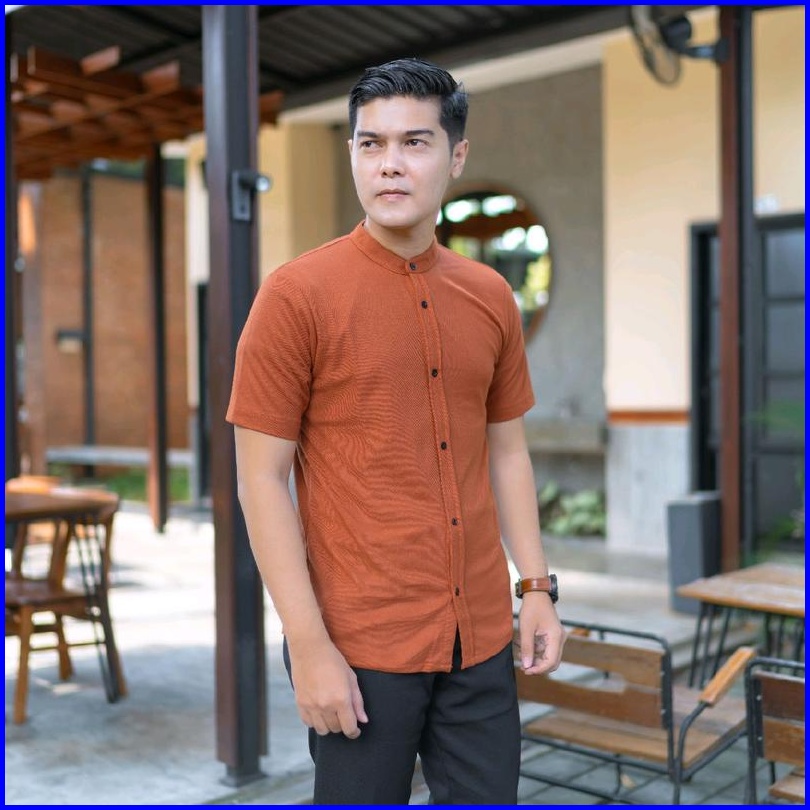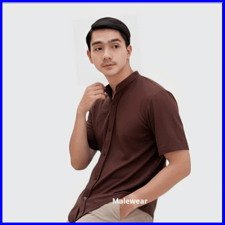 Kemeja Pria Lengan Pendek Kerah Sanghai Casual Polos Slimfit Size M - Xxl