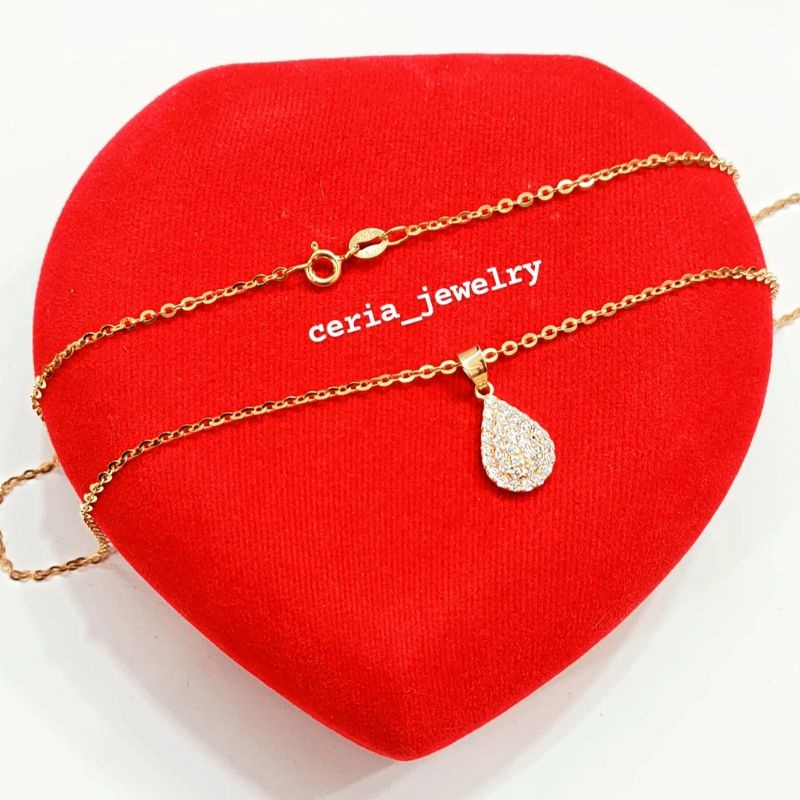 Kalungg Perak Asli Silver 925 Lapis Ems Model Nori + Lontin Oval Kecil Tetas Air - Perhiasan Perak Wanita